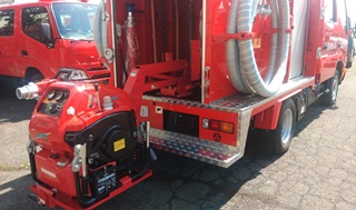| 小型動力ポンプ積載車 小型動力ポンプ、消防用資機材を搭載 電動油圧式昇降装置を使用 |